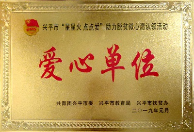 2019年1月,在興平市“星星火,點點愛”助力脫貧微心愿認領活動中,寶塔山漆被共青團興平市委、興平市教育局、興平市扶貧辦評為“愛心單位”