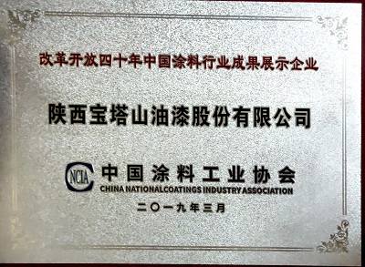 2019年3月,,寶塔山漆被中國涂料工業協會評為“改革開放四十周年中國涂料行業成果展示企業”
