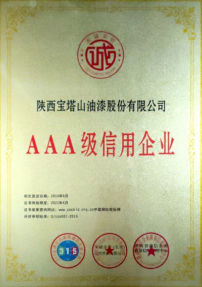 2018年3月,寶塔山漆被陜西省企業信用協會與陜西省企業信用年度創新峰會組委會評為“2018年度創新管理示范單位”