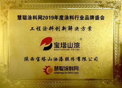 2020年7月,寶塔山漆榮獲第十六屆2020年度涂料行業影響力品牌頒獎盛典活動中榮獲“工程涂料創新解決方案”