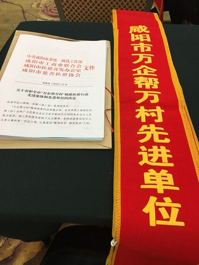 2018年8月寶塔山漆榮獲“咸陽市萬企幫萬村先進單位”