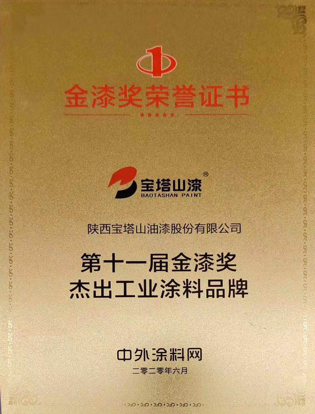2020年6月,寶塔山漆榮獲第十一屆金漆獎“杰出工業涂料品牌”