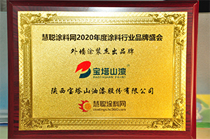 2020年7月,寶塔山漆榮獲第十六屆2020年度涂料行業影響力品牌頒獎盛典活動中榮獲”外墻涂裝杰出品牌“