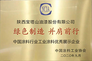 2020年9月,寶塔山漆獲評“中國涂料行業工業涂料優秀展示企業”