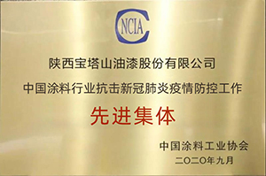 2020年9月,寶塔山漆獲評“中國涂料行業抗擊新冠肺炎疫情防控工作先進集體”