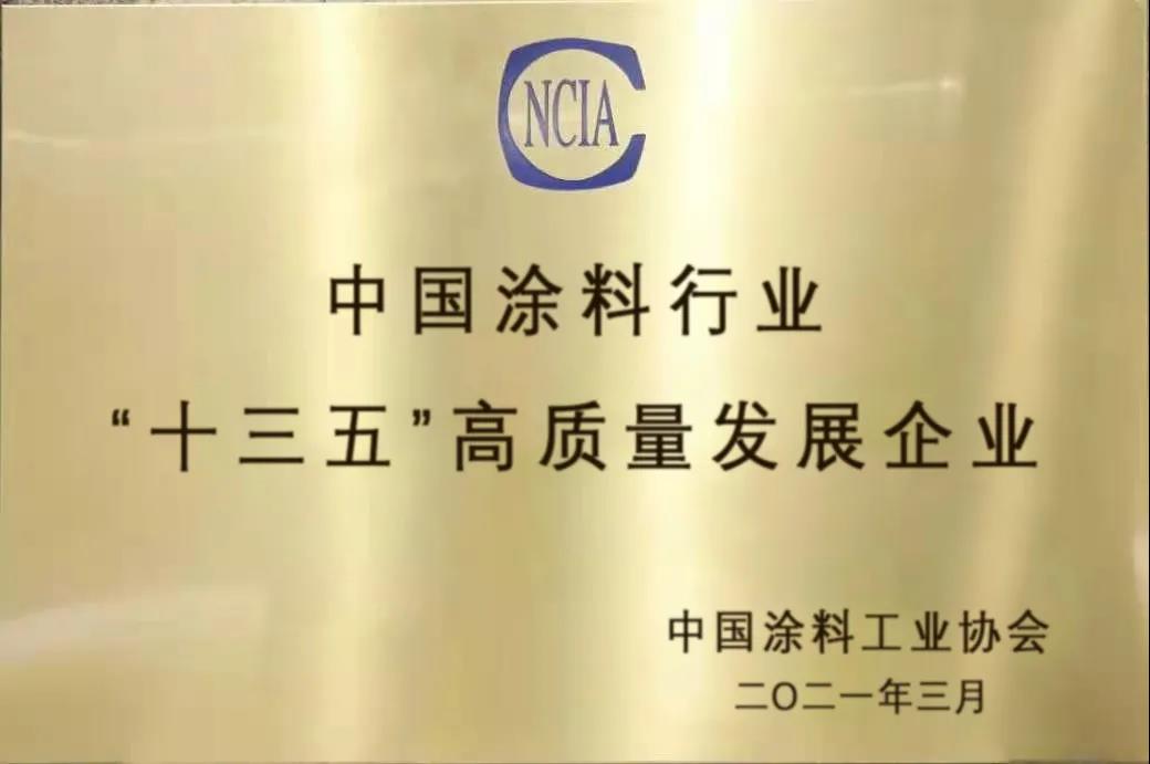 2021年3月25日,公司榮獲中國涂料行業“十三五”高質量發展企業獎項。