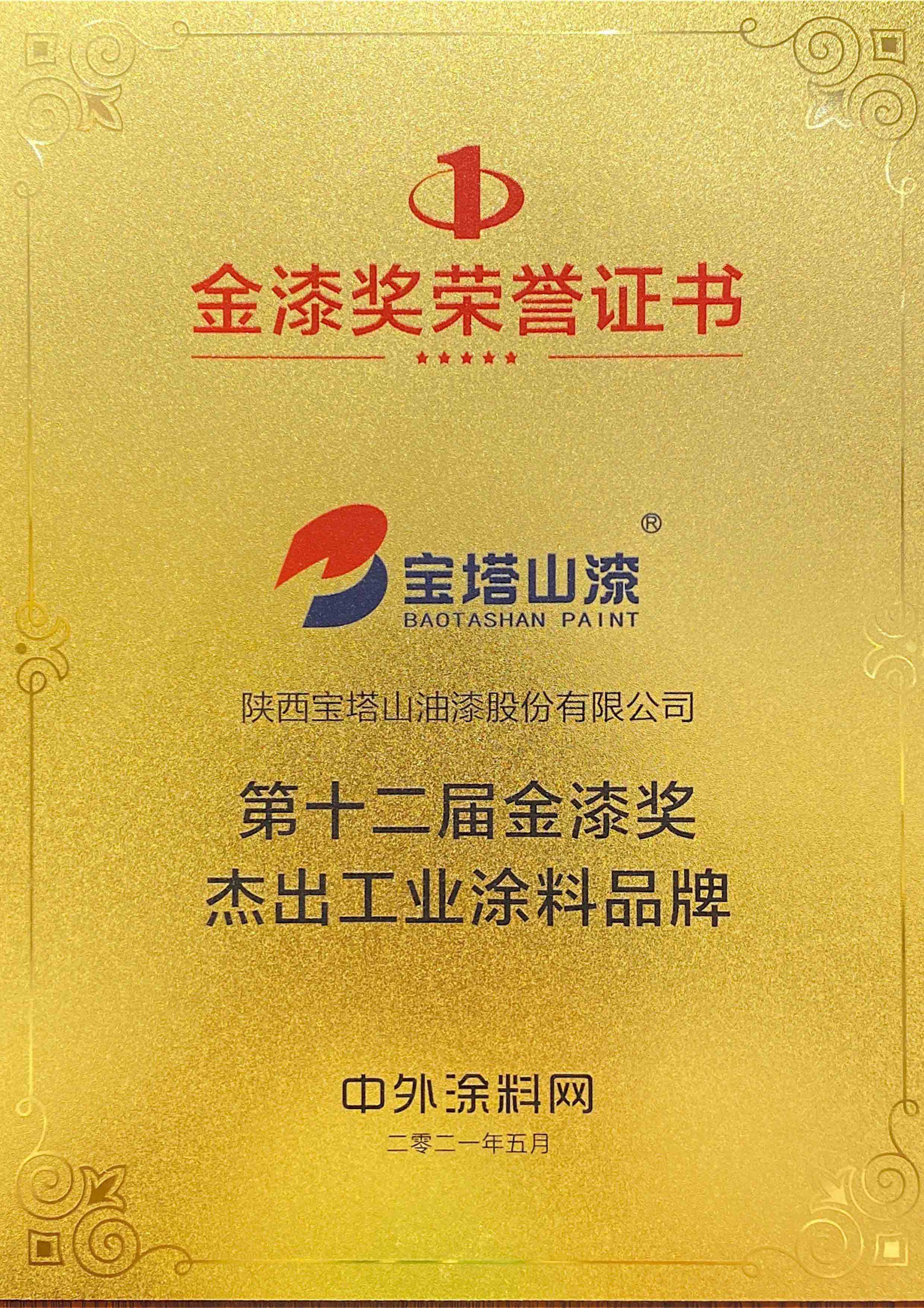 2022年6月,寶塔山漆榮獲第十三屆金漆獎“杰出工業涂料品牌”。