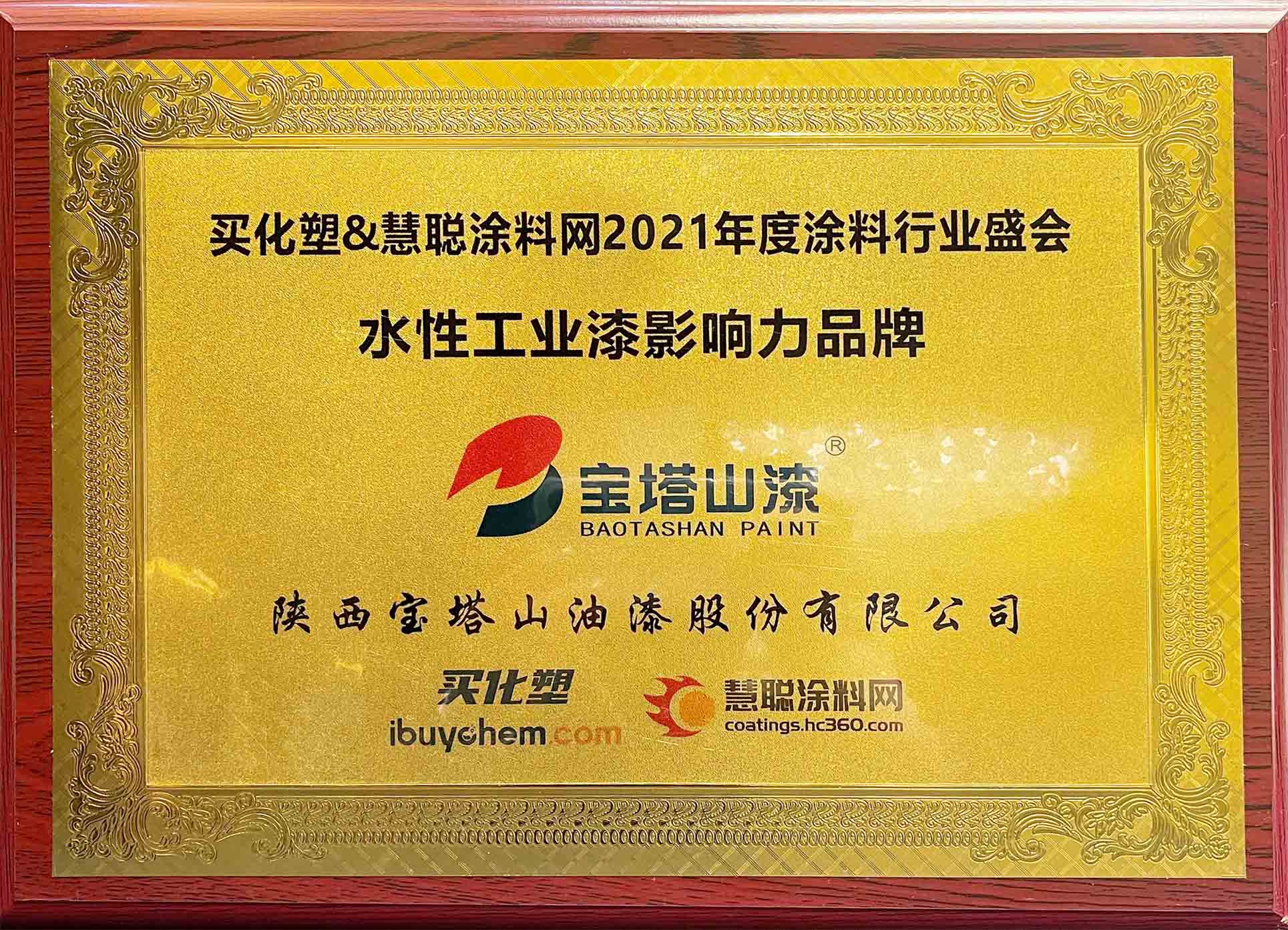 2021年6月26日,寶塔山漆榮獲2021 年度“水性工業漆影響力品牌 ”