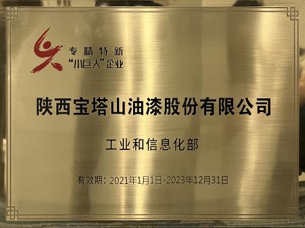 2021年,寶塔山漆入選專精特新”小巨人“企業名單。