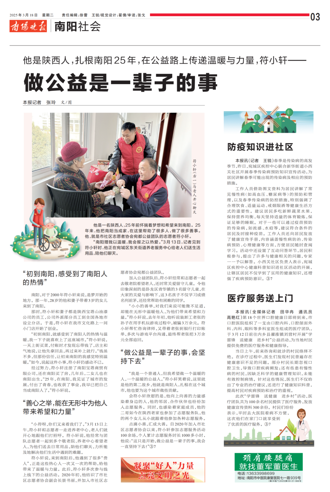 符小軒公益事跡登上《南陽晚報》