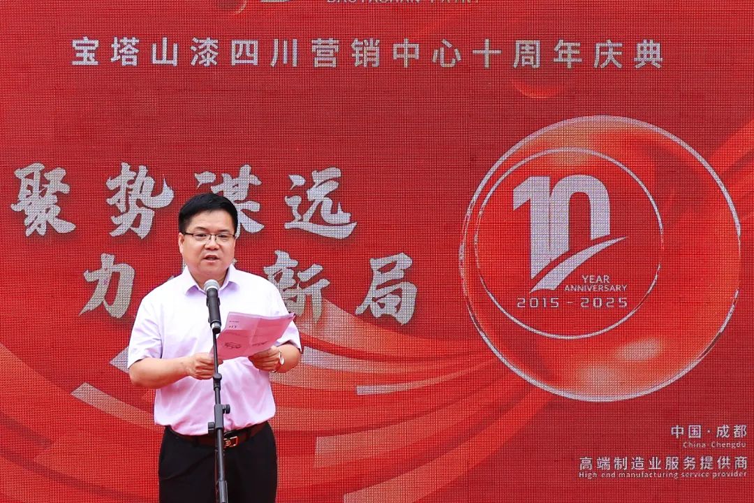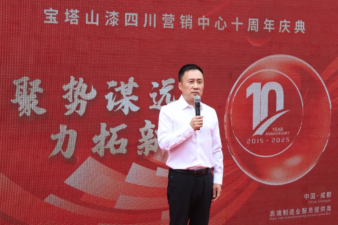 2025年5月26日,聚勢(shì)謀遠(yuǎn) 力拓新局——寶塔山漆四川營(yíng)銷(xiāo)中心十周年慶典盛大啟幕。陜西寶塔山新材料科技有限公司董事長(zhǎng)楊鵬剛等管理層及客戶代表出席此次活動(dòng)。
