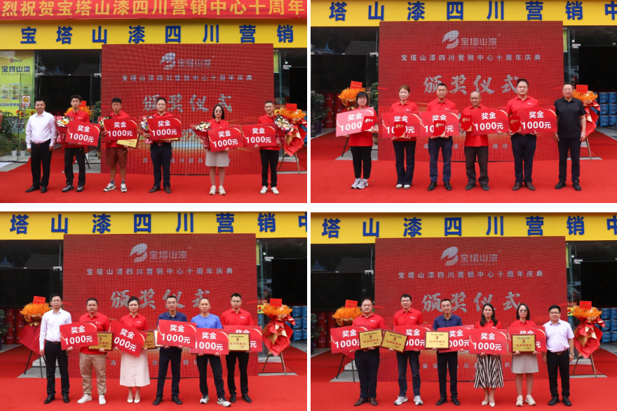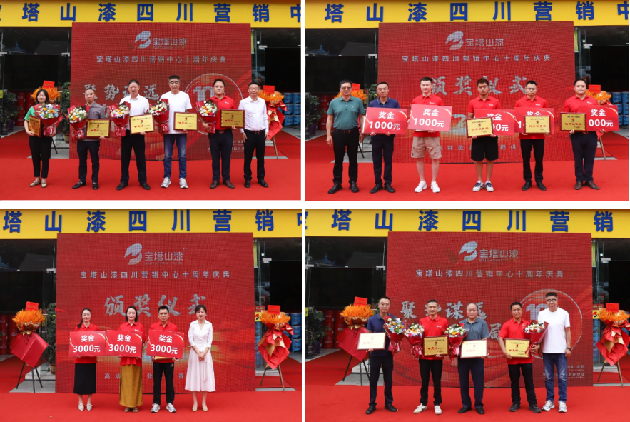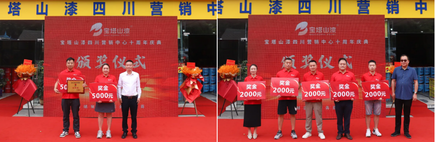 慶典現(xiàn)場(chǎng)先后頒發(fā)了友好商會(huì)、寶塔山漆四川旗幟、友好合作單位、優(yōu)秀銷(xiāo)售部、優(yōu)秀員工、銷(xiāo)售明星、營(yíng)銷(xiāo)金星、營(yíng)銷(xiāo)金牌、營(yíng)銷(xiāo)狀元多項(xiàng)榮譽(yù),表彰在十年歷程中做出卓越貢獻(xiàn)的單位與個(gè)人,每一個(gè)獎(jiǎng)項(xiàng)都承載著對(duì)獲獎(jiǎng)?wù)叩恼J(rèn)可與鼓勵(lì)。